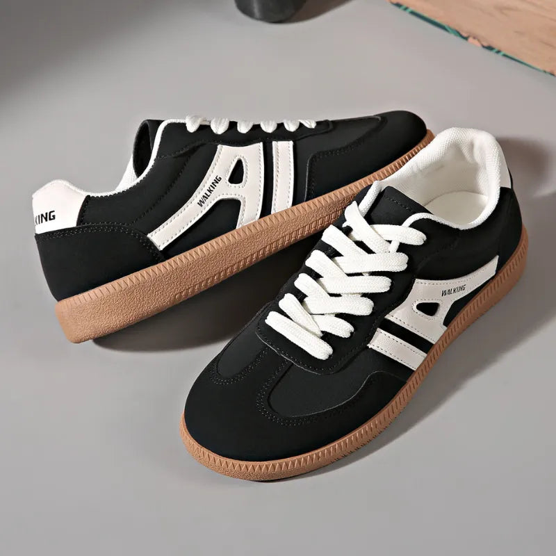 Ces baskets de ville à semelle plate pour femme séduisent par leur style rétro chic et leurs lignes épurées. Faciles à associer au quotidien, elles offrent une bonne stabilité et un confort agréable pour marcher en ville toute la journée.